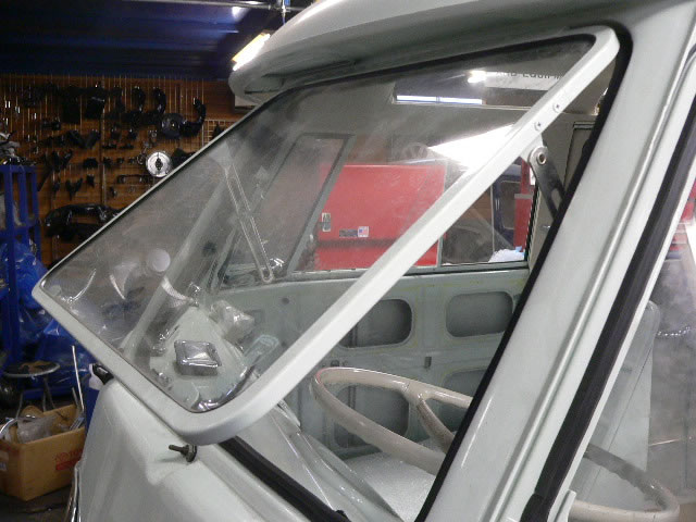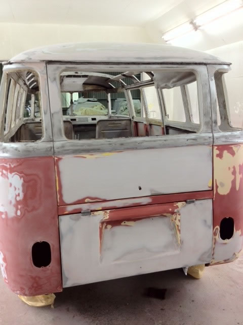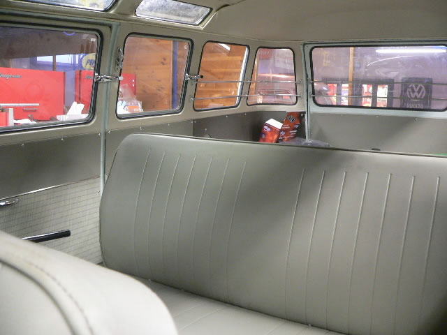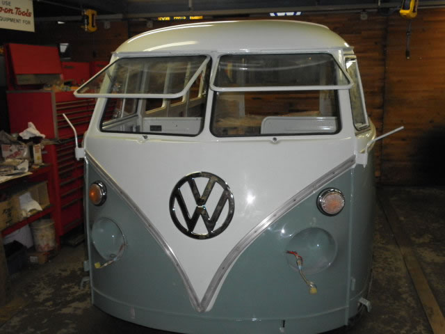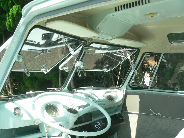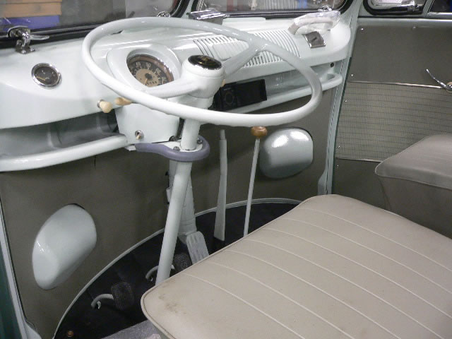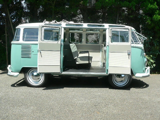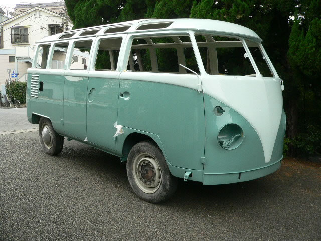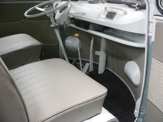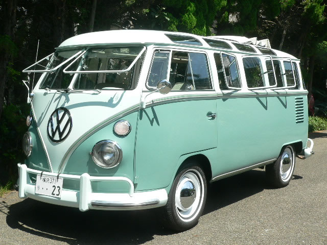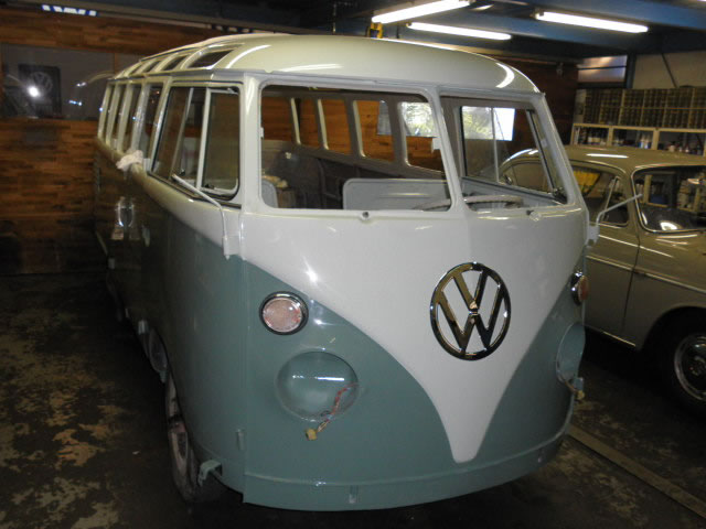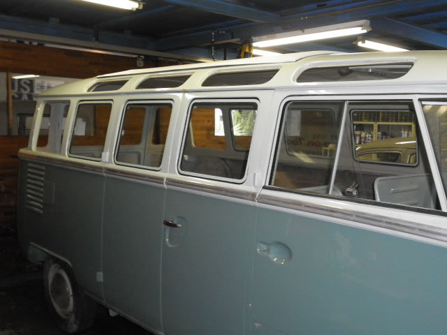 Type2 BUSの最高峰、23Window Last Year ’63 23W DX BUSをコンプリートに仕上げました。 10数年前に日本に輸入された車両で、21W&23W BUSの泣き処スカイウィンドウ&スライドトップ付近を中心にRUSTがありましたが各部切継ぎ板金等を行い、オーナー様のチョイスでブルーホワイト/ ターキスでコンプリートにPaint。 インテリアもキャンバストップ、ヘッドライナー、ドアパネル、シートカバーとコンプリートにRefresh。 ドアパネルは、オリジナルVintage styleドアパネルにパネルモールで拘り、シートもフレーム、スプリングの修正、ペイント後オリジナルスタイルヘアーパットを交換し、オリジナルスタイルシートカバーで張替え見た目&座り心地とも抜群です。 エンジンもニューケースを使用して1600ccでオーバーホール、キャブレーター、コイル、デスビ、フェールポンプ、オルタネーター等補記類も全てNEWパーツで組上げクーラーユニットを装着。