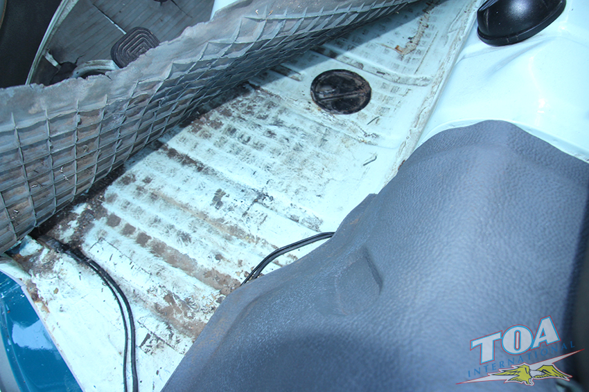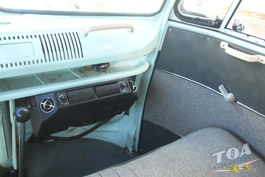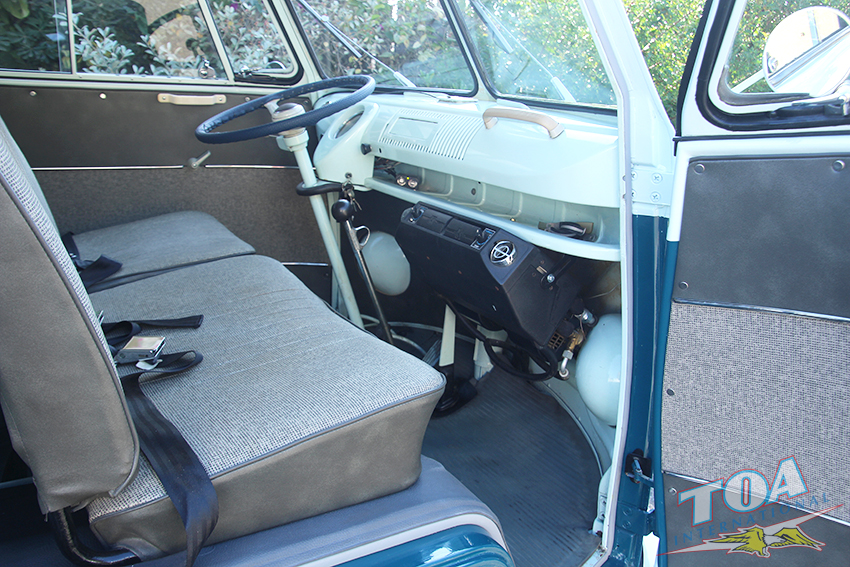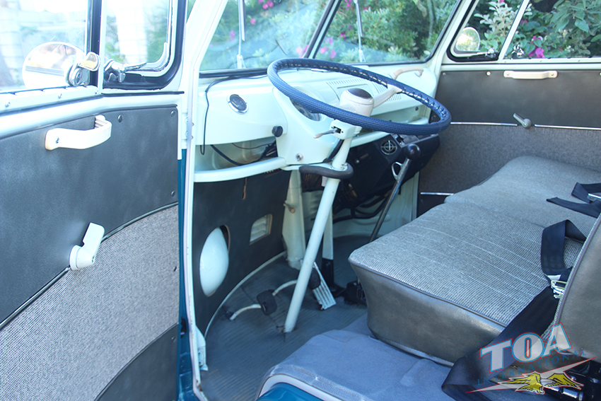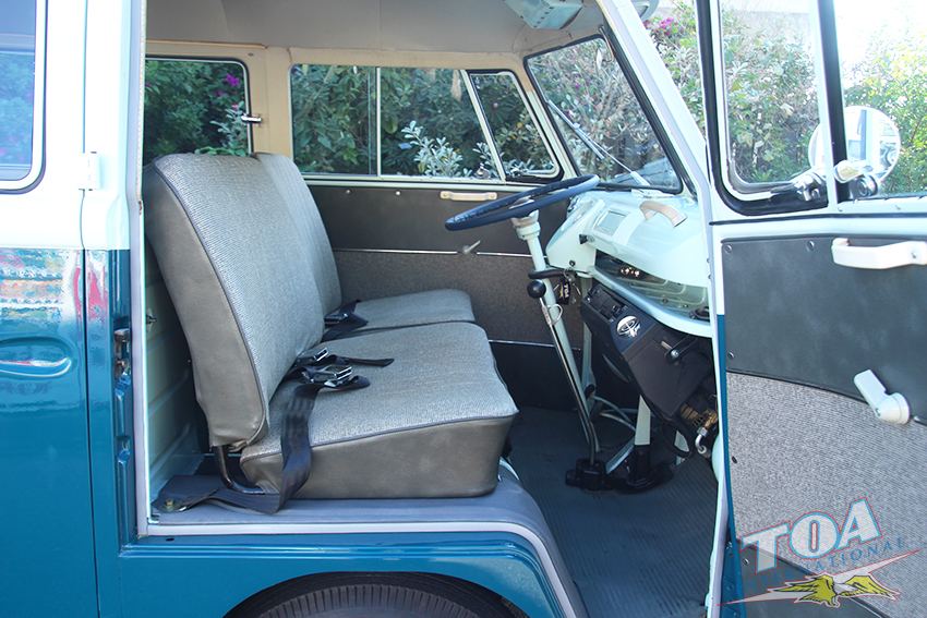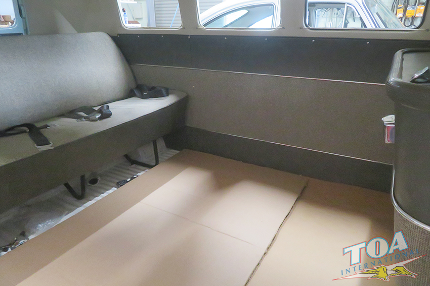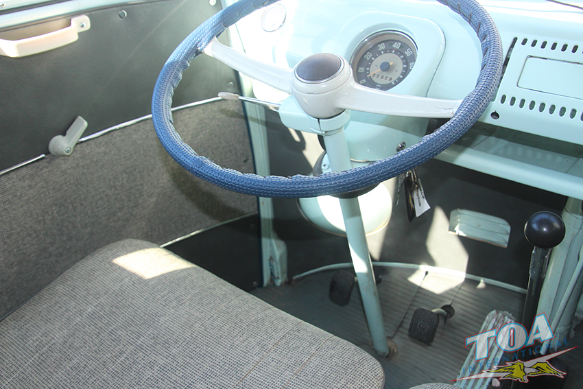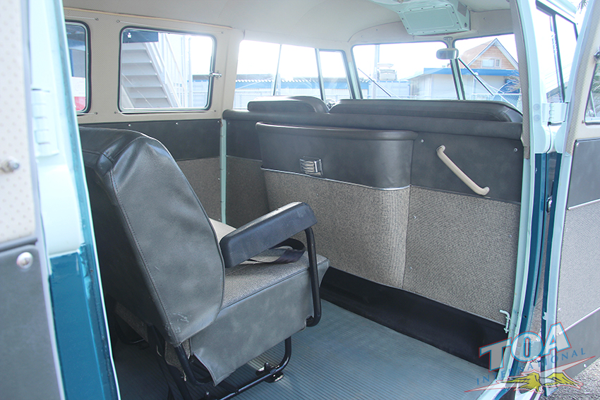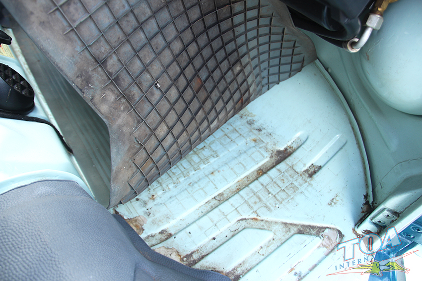 インテリアは状態の良いヘッドライナー・シートを残し、ドアパネルをオリジナルスタイルwithパネルモールで張り替え、ラバーマットはなんとフロント&リヤともオリジナルのブルーラバーマットです。